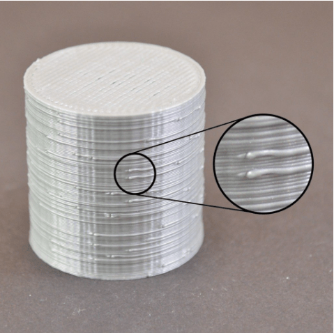 Blobs are small bumps or excess filament deposited during layer changes or pauses. Zits are pinhead-like marks typically found along the seam line of your print, especially in cylindrical or curved objects.