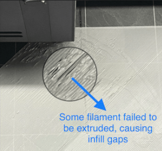 Under-extrusion occurs when the printer doesn’t deliver enough filament during printing. You’ll notice gaps, weak layers, brittle walls, or areas that look not fully filled and fragile.